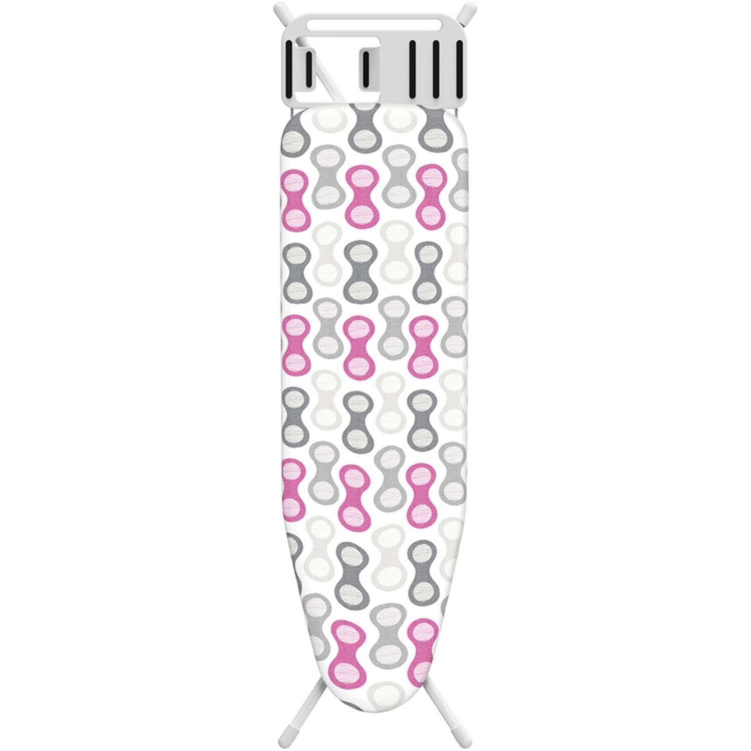 Strygefladen er 38×120 cm. Connect har et robust jernstativ og smart ledningsholder, der holder ledningen ude af vejen, når du stryger. Læs hele beskrivelsen