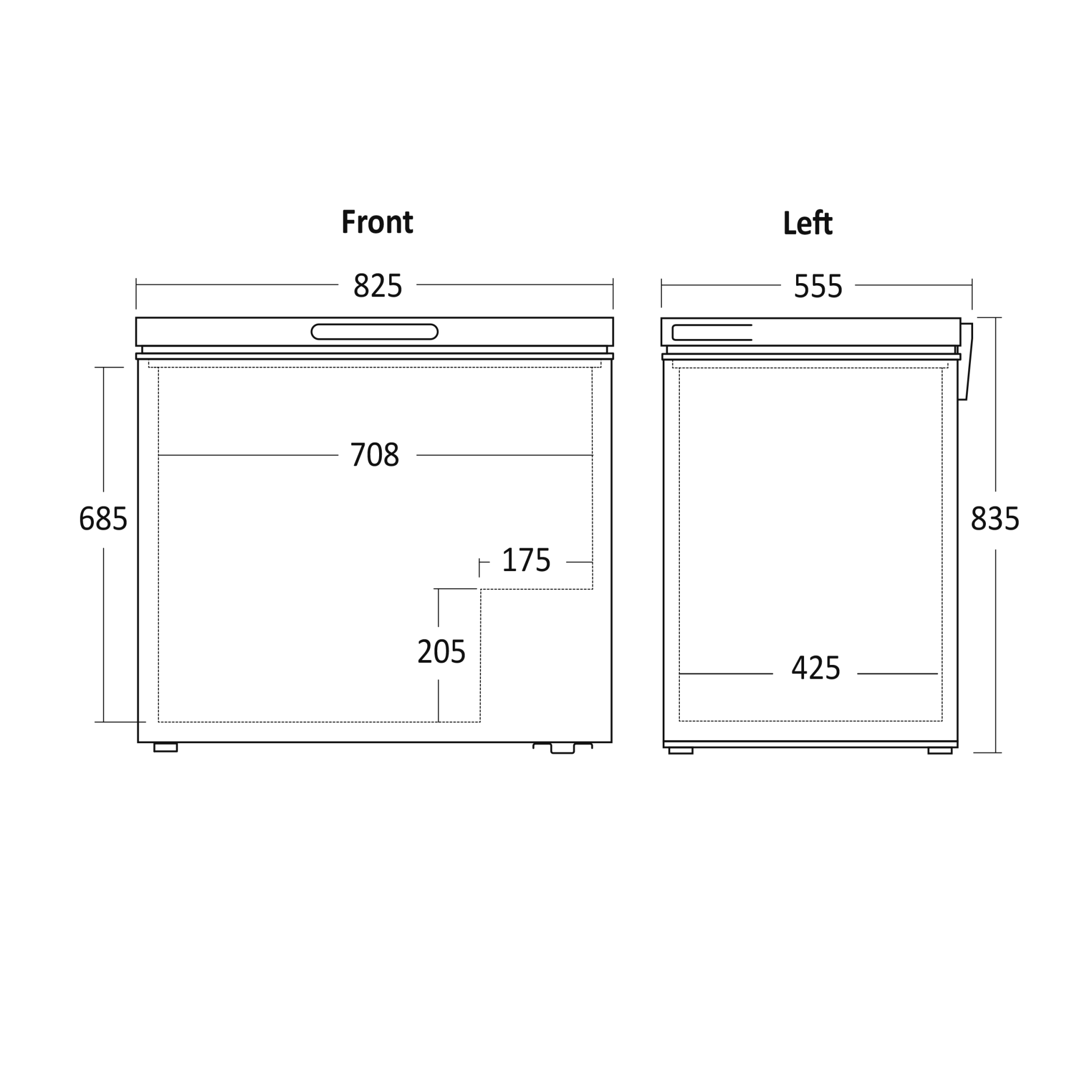 Kummefryseren har en ”to i en” funktion, som betyder at fryseren kan køre i et temperaturspænd på -24°C til + 5°C, således fryseren også kan laves om til et kølerum. Kummefryseren kan stå i tørre omgivelser ned til -15°C, hvilket er optimalt, hvis den f.eks. skal stå i en garage. Låget kan stå i forskellige vinkler på 45°-75° – komfortabelt så låget ikke blot klapper i. Integreret energibesparende LED lys i låget, giver et godt overblik i boksen. Temperaturen justeres nemt på det manuelle panel på fronten.