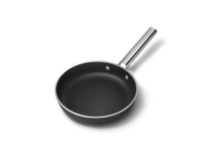 SMEG FPF2002BLM er en 20 cm stegepande i mat sort med PFAS‑fri non‑stick. Jævn varmefordeling, ovnfast op til 250 °C, virker på alle kogeplader og tåler opvaskemaskine. Inspireret af ikonisk 50’er‑stil.