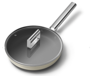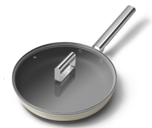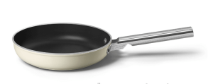 SMEG FPF2002CRM er en 20 cm stegepande i creme med 50’s Style, PFAS‑fri keramisk non-stick, koldsmiddet aluminium og stålgreb; induktionsklar, ovnfast til 250 °C og opvaskemaskinesikker. Jævn varmefordeling og holdbart design.